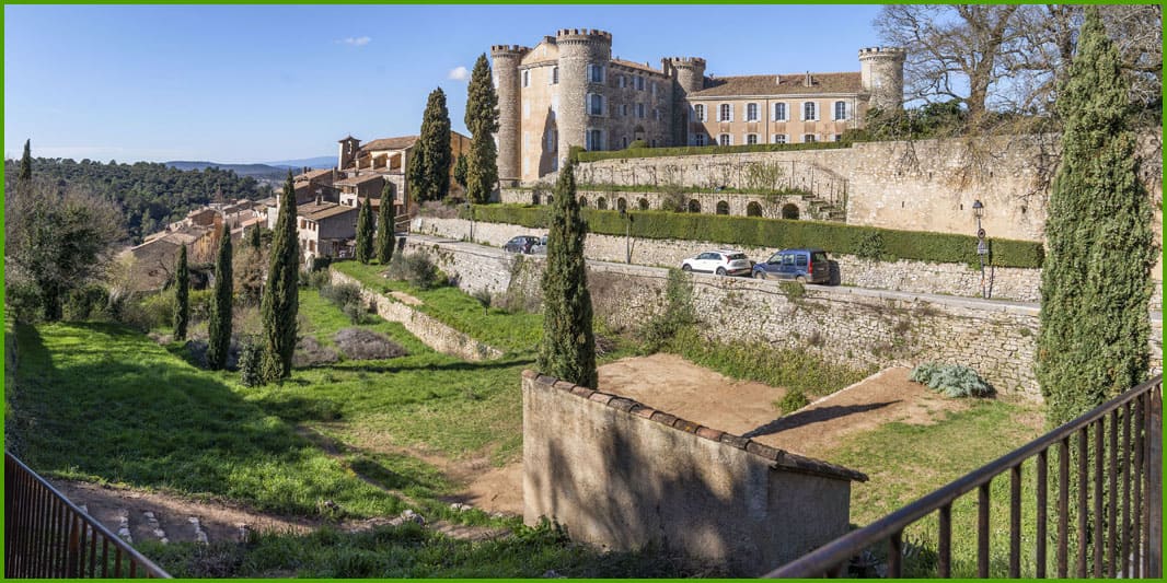 Du haut de son promontoire ce village, classé “village de caractère”, s’étale en éventail autour de son château. La vue dominante sur la vaste plaine de la Durance jusqu’au plateau de Canjuers y est superbe. Le cheminement dans les ruelles étroites bordées par les hauts murs des maisons en pierres vous emmène à des places plus aérées à l’ombre des platanes. Ici la vie s’écoule doucement au rythme des saisons.
