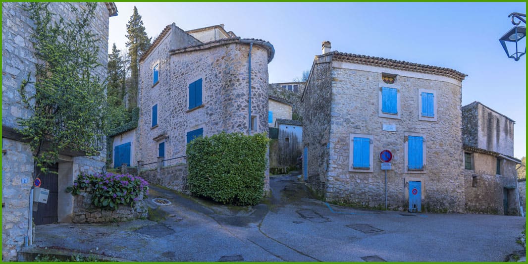 Ce village perché qui domine la riche plaine agricole de Rians, offre une vue incomparable jusqu’aux contreforts des Alpes, du Ventoux au Lubéron, des Bessillons au Verdon. L’été y est fort agréable, mais attention à l’hiver, le Mistral y a ses habitudes… Il semble que les anciennes maisons en pierres, en compagnie du château imposant, se font face pour se protéger du chaud ou du froid.